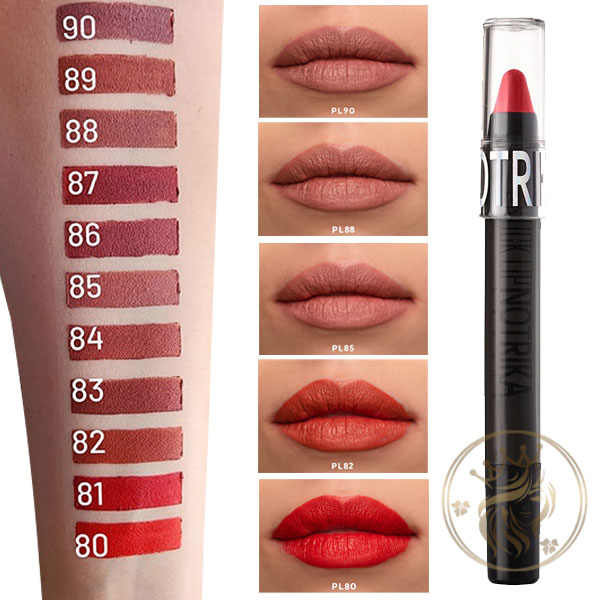 رژ لبهای مدادی نوتریکا در طیف وسیعی از رنگهای نود (Nude)، صورتی، قرمز، کالباسی و بنفش عرضه شدهاند و پاسخگوی تمام سلیقهها و موقعیتها می باشد.